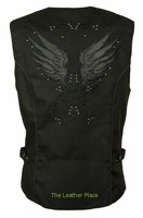 WOMEN'S MOTORCYCLE RIDING BLACK TEXTILE VEST W/ STUD & WINGS DETAILING