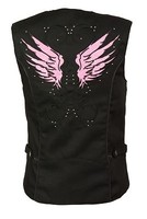 WOMEN'S MOTORCYCLE RIDING PINK TEXTILE VEST W/ STUD & WINGS DETAILING LIGHTWEIGH