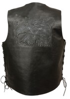 MEN'S MOTORCYCLE SIDE LACE BLK EAGLE HEAD & STARS BACK EMBOSSED SINGLE PANEL