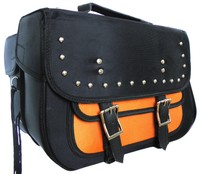 Textile Studded Zip-Off Saddle Bag BLACK AND ORANGE