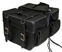This Two strap motorcycle saddlebag has buckle closures with Velcro backup. A good, serviceable piece of biker gear. This set would look great on any bike and give you plenty of room